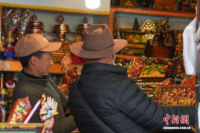1月27日,藏历新年将至,拉萨街头年味渐浓。城区街巷灯笼高挂,市民忙着采购酥油花、香布、切玛盒、吉祥羊头、藏文春联等特色年货,各式新年好物琳琅满目,处处洋溢着喜庆祥和的节日氛围,人们以传统方式迎接新年到来。