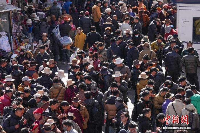 图为拉萨冲赛康市场前来选购年货的民众络绎不绝。