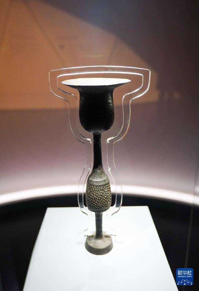 这是1月27日在山东博物馆“对话蛋壳黑陶高柄杯”明星文物展上拍摄的龙山文化蛋壳黑陶高柄杯。(图片来源:本文图片均据新华社)