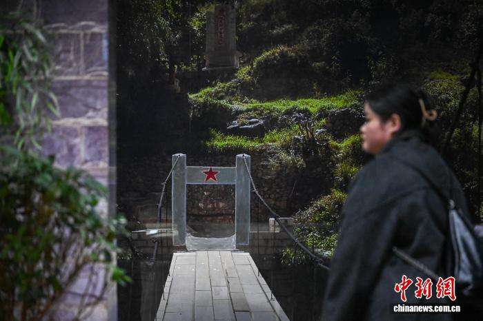 1月28日,“红军桥”造景吸引游客。