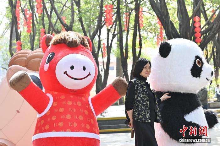 图为游客和动物人偶合影。(图片来源:本文图片均据中新网)