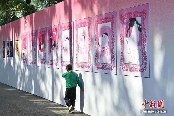 图为现场展示艺术家金城创作的马年新春主题画作。