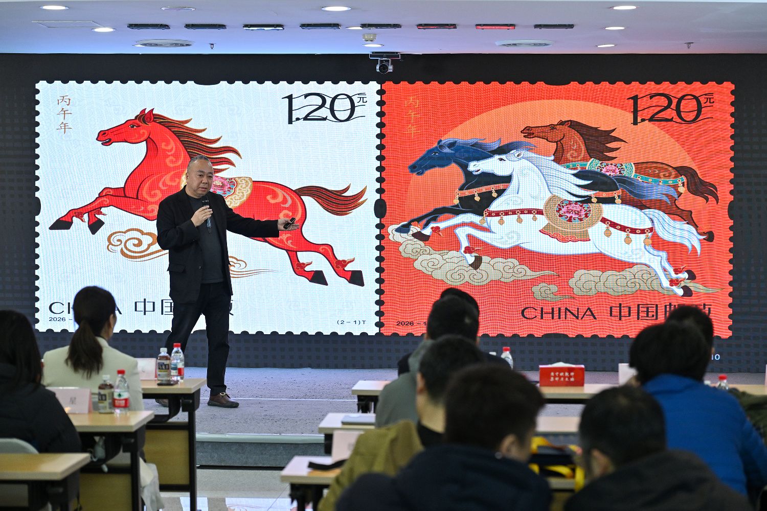 1月29日,《丙午年》生肖邮票设计师王红卫介绍《丙午年》生肖邮票设计理念和传统生肖文化的多元化表现形式。