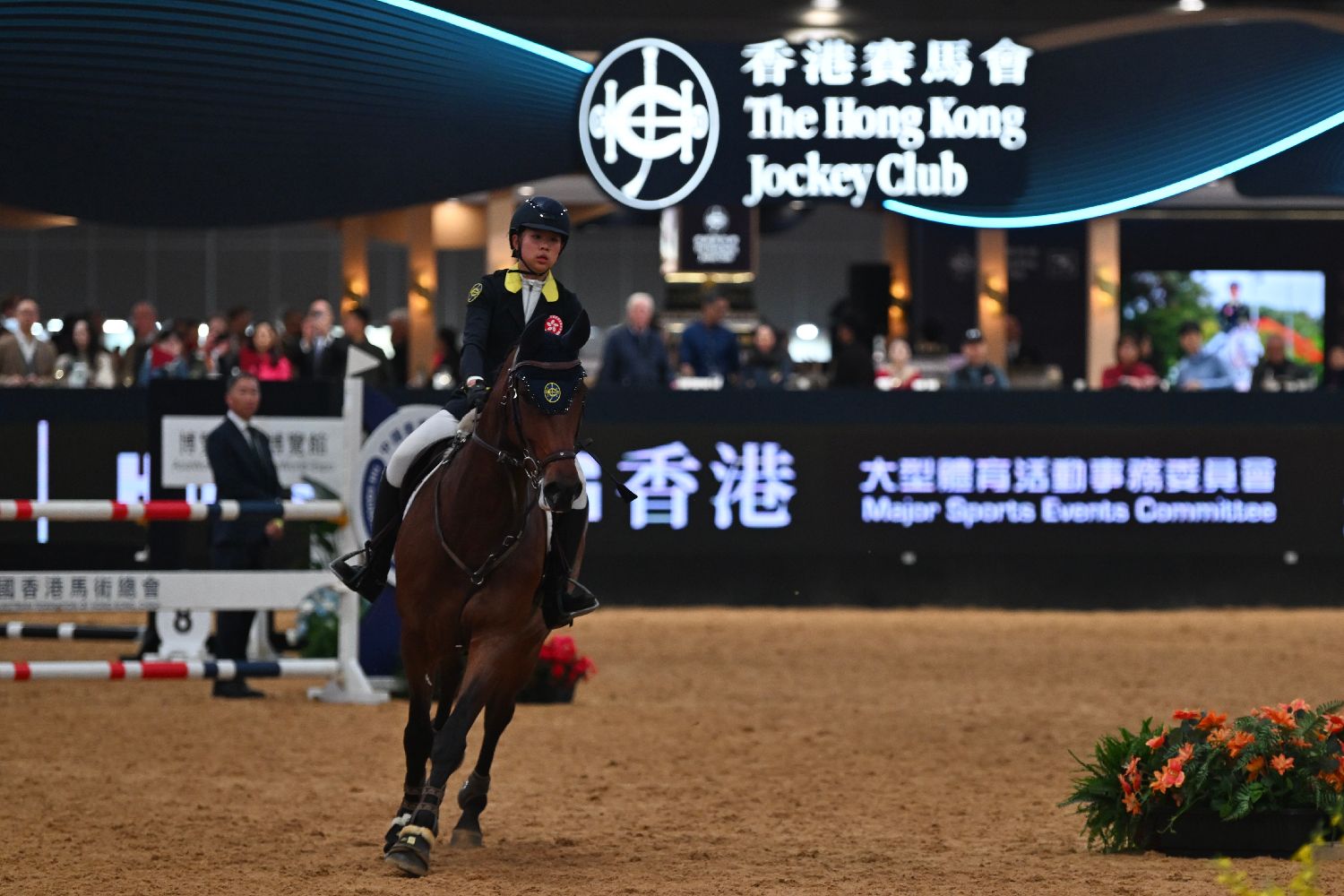 1月30日,第二届浪琴香港国际马术盛典在香港亚洲国际博览馆启幕。图为骑手参加“香港赛马会亚洲青年挑战赛”。(图片来源:中新社)