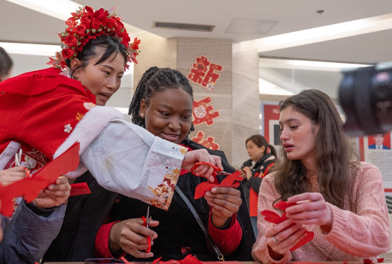 春节临近,重庆市巴南区举办2026年第一季度“老外@Chongqing”活动。20名外国留学生齐聚一堂,沉浸式体验木洞山歌、剪纸、打糍粑等当地传统文化习俗,感受中国年的喜庆氛围。
