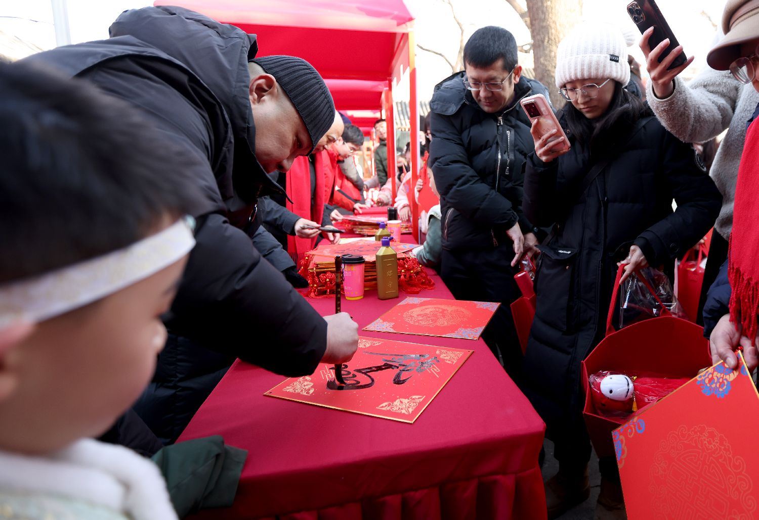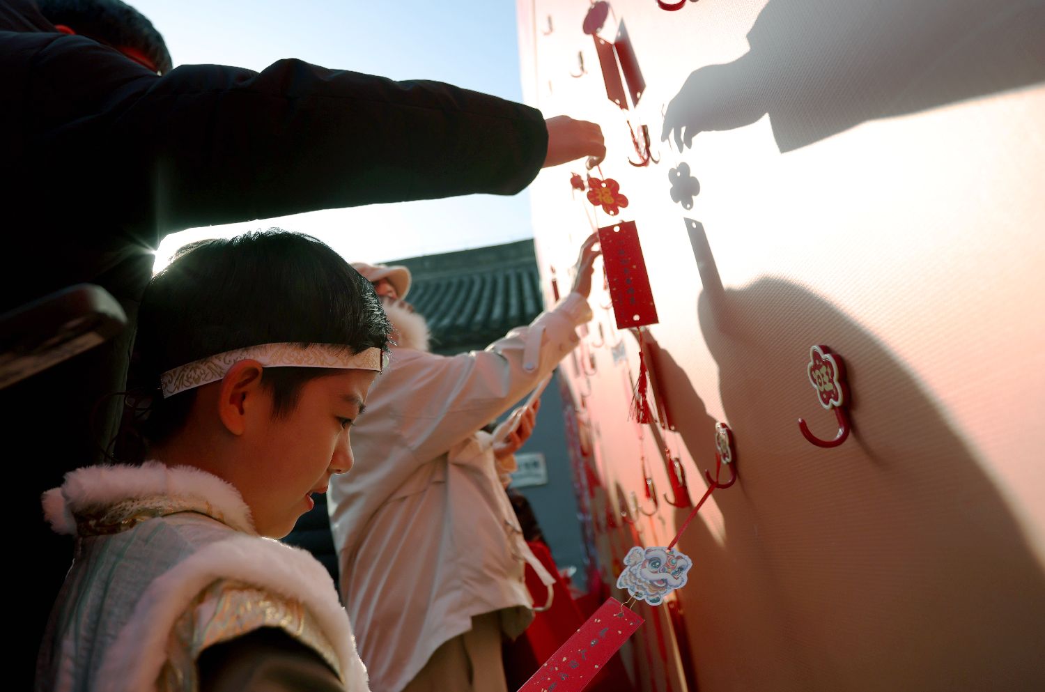 2月4日,民众在现场排队写祝福语,寓意“马上有钱”。