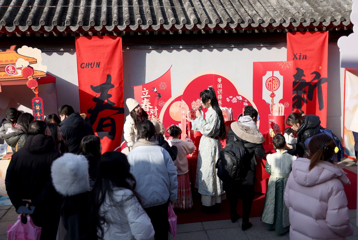 2月4日,立春文化活动现场,民众体验“立春对诗”活动。