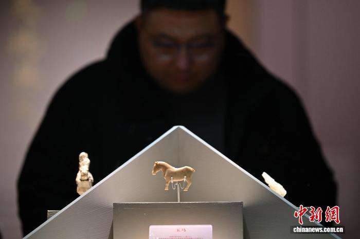 图为民众参观“相马——马文物特展”中西周时期的玉马。