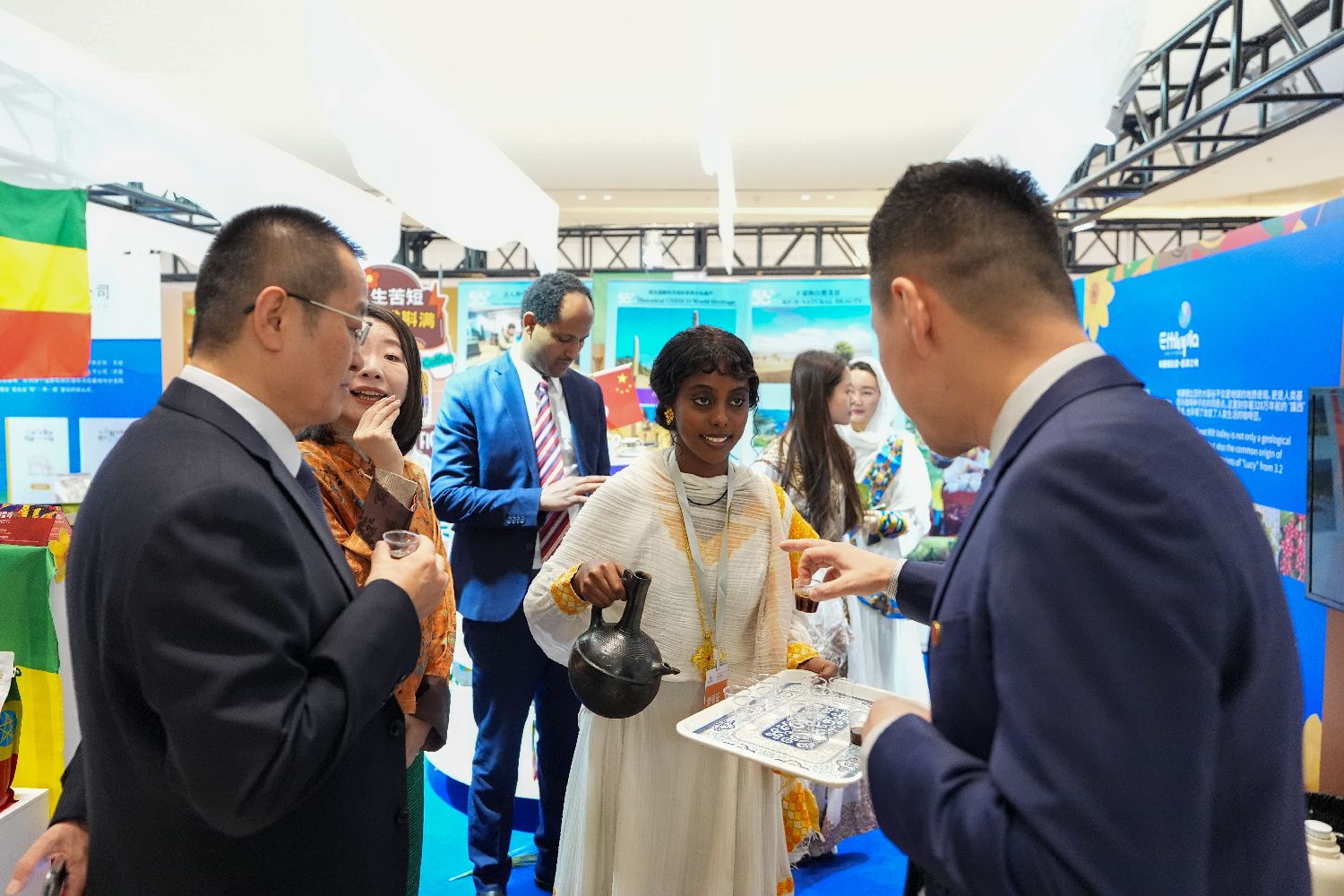2月4日,在“共享大市场·出口中国”2026年首场活动暨北京国际精品荟的进口商品推介区,参观者在品尝展出的埃塞俄比亚咖啡。(图片来源:本文图片均据新华社)