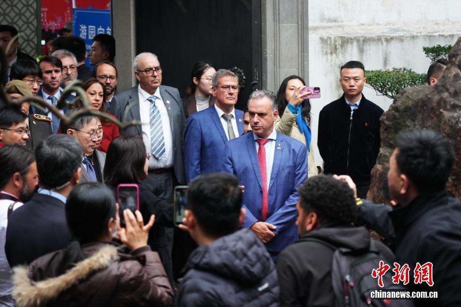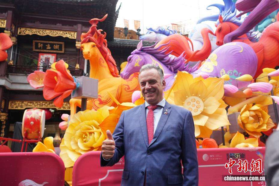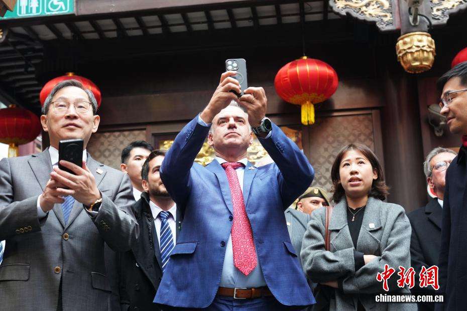 图为乌拉圭总统奥尔西驻足豫园,用镜头记录中国年味。(图片来源:本文图片均据中新网)