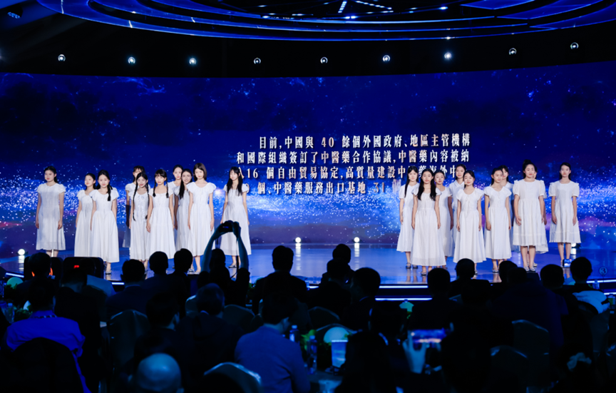 “全球中医药文化盛典”尾声,现场童声合唱由AI参与创作的主题曲《疗愈之道》,在歌声与光影中向所有为中医药事业发展贡献力量的个人、机构及全球关注者致敬。