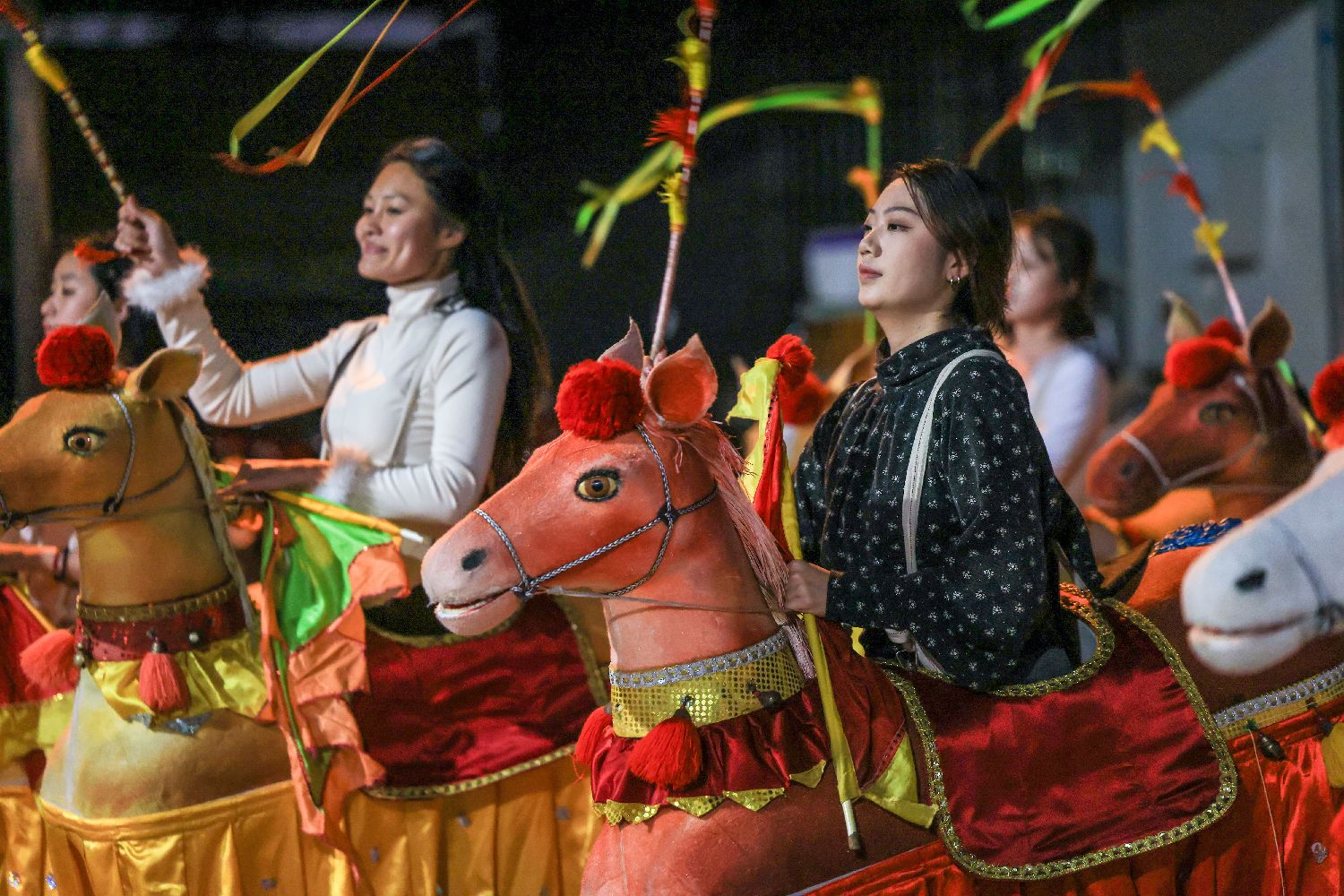 作为当地民众喜闻乐见的表演艺术,布马舞不仅是节日庆典上不可或缺的“重头戏”,更承载着人们对吉祥如意的美好祈愿,为新春佳节增添了浓郁的喜庆气氛。图为2月4日,在广东省潮州市饶平县霞西村,霞西布马舞队队员进行布马舞排练。(图片来源:本文图片均据新华社)