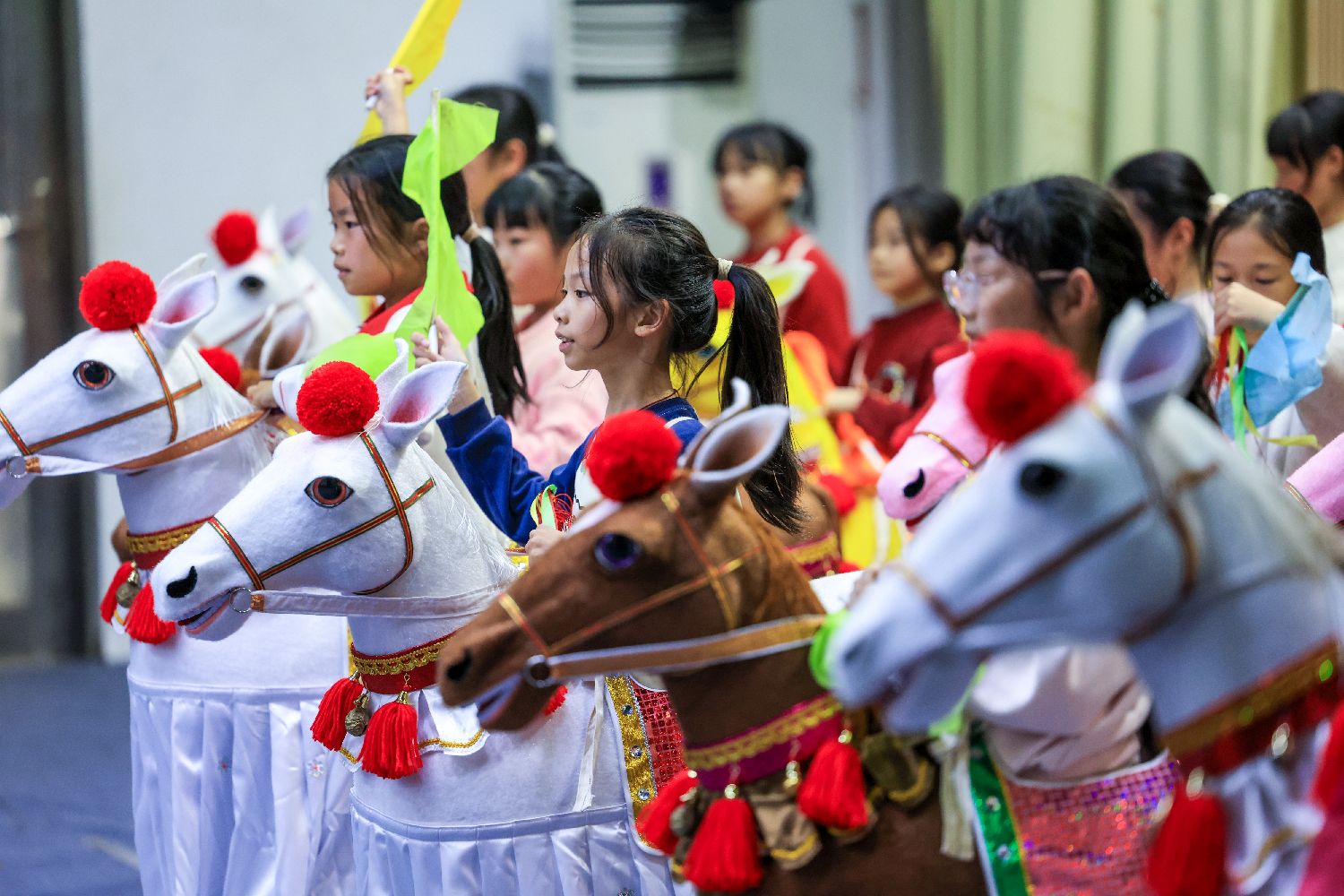 2月4日,在广东省潮州市饶平县青少年宫,少儿布马舞队队员在排练。
