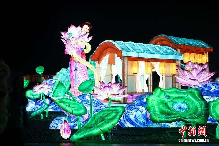2月7日晚,浙江平湖,“金玉满堂”灯组流光溢彩,吸引民众。(图片来源:本文图片均据中新网)