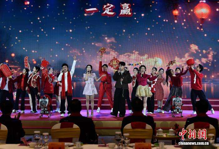 图为演员在联谊活动上表演开场节目《新爱拼才会赢》。