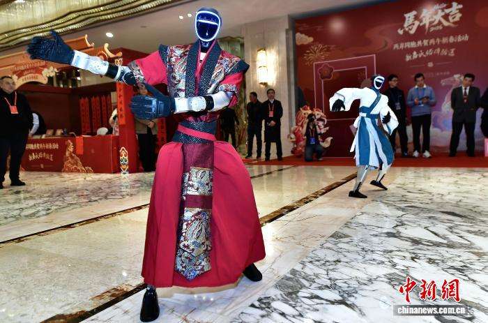 图为机器人表演舞蹈欢迎参加联谊活动的嘉宾。