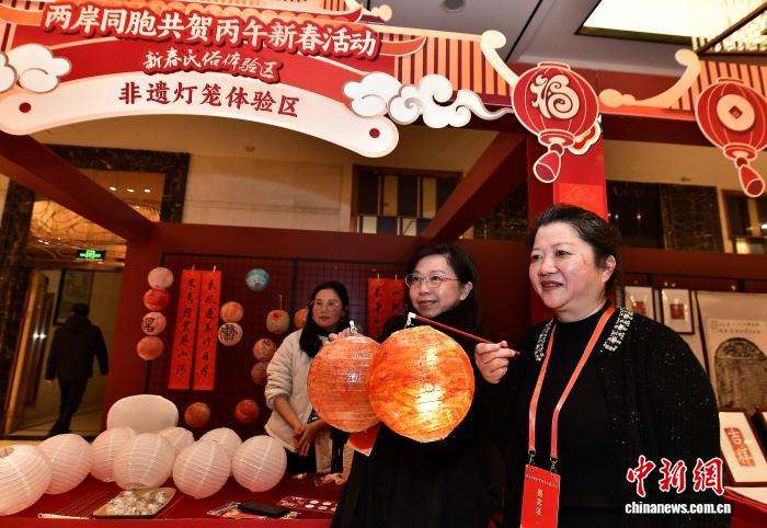 图为台胞在联谊活动新春民俗体验区参观体验。