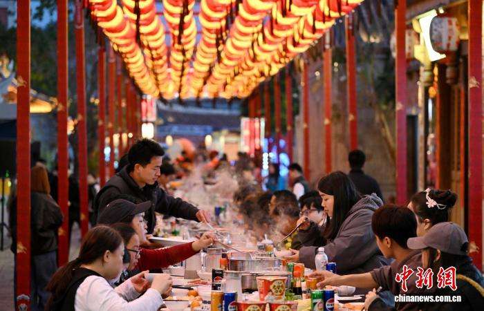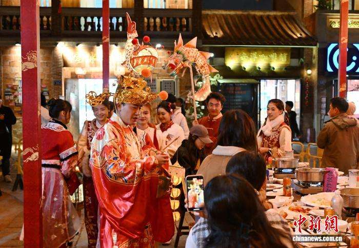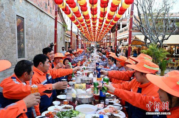 2月11日,南方小年夜,福建省晋江市梧林传统村落举办长桌宴,近200名基层劳动者、过年留晋人才、市民游客等欢聚一堂,以融合年俗与温情的围炉共庆团圆,致敬平凡奉献,传递新春祝福。