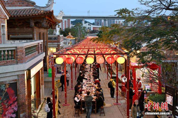 2月11日,南方小年夜,福建省晋江市梧林传统村落举办长桌宴。