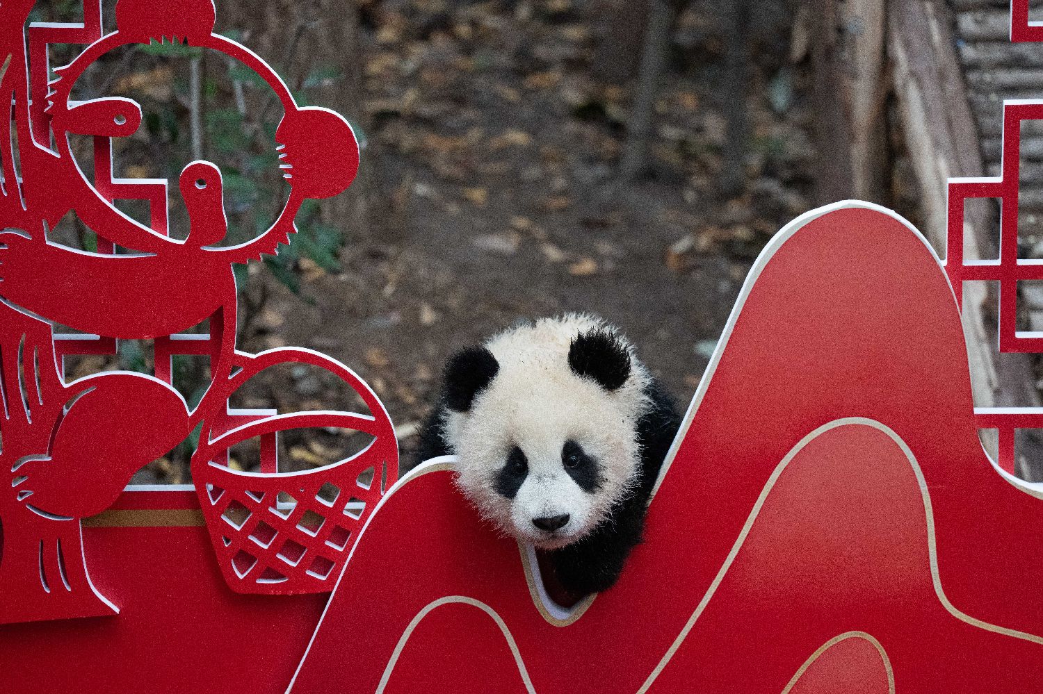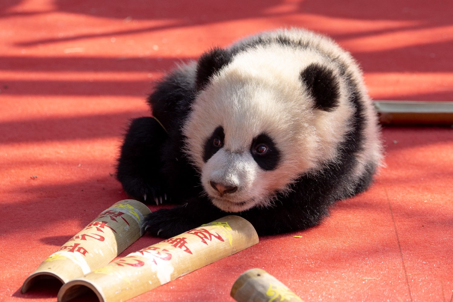 在中国大熊猫保护研究中心神树坪基地,2025级新生大熊猫幼崽亮相新春主题活动(2月5日摄)。(图片来源:本文图片均据新华社)