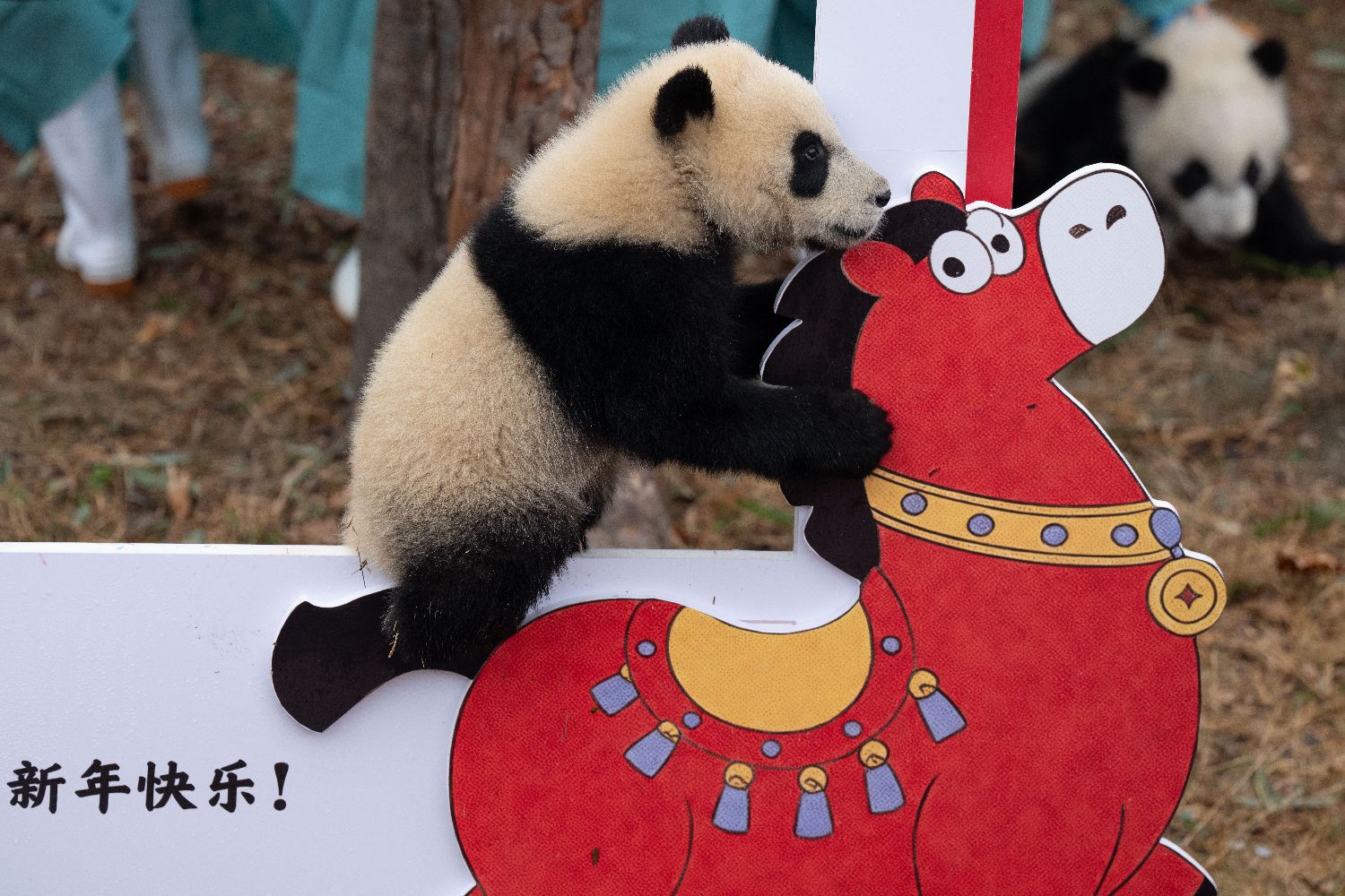 近日,大熊猫国家保护研究中心举办“马上见国宝”新春主题活动,中国大熊猫保护研究中心和成都大熊猫繁育研究基地的30只2025级新生熊猫宝宝亮相,为大家送上新春祝福。据悉,2025年两大机构共成功繁育45只大熊猫。