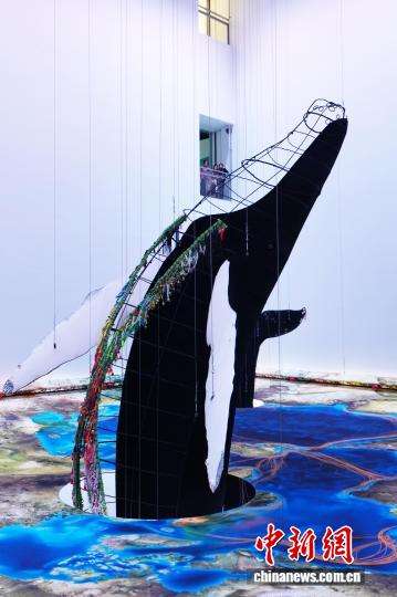 图为巨鲸装置仿佛破水而出。