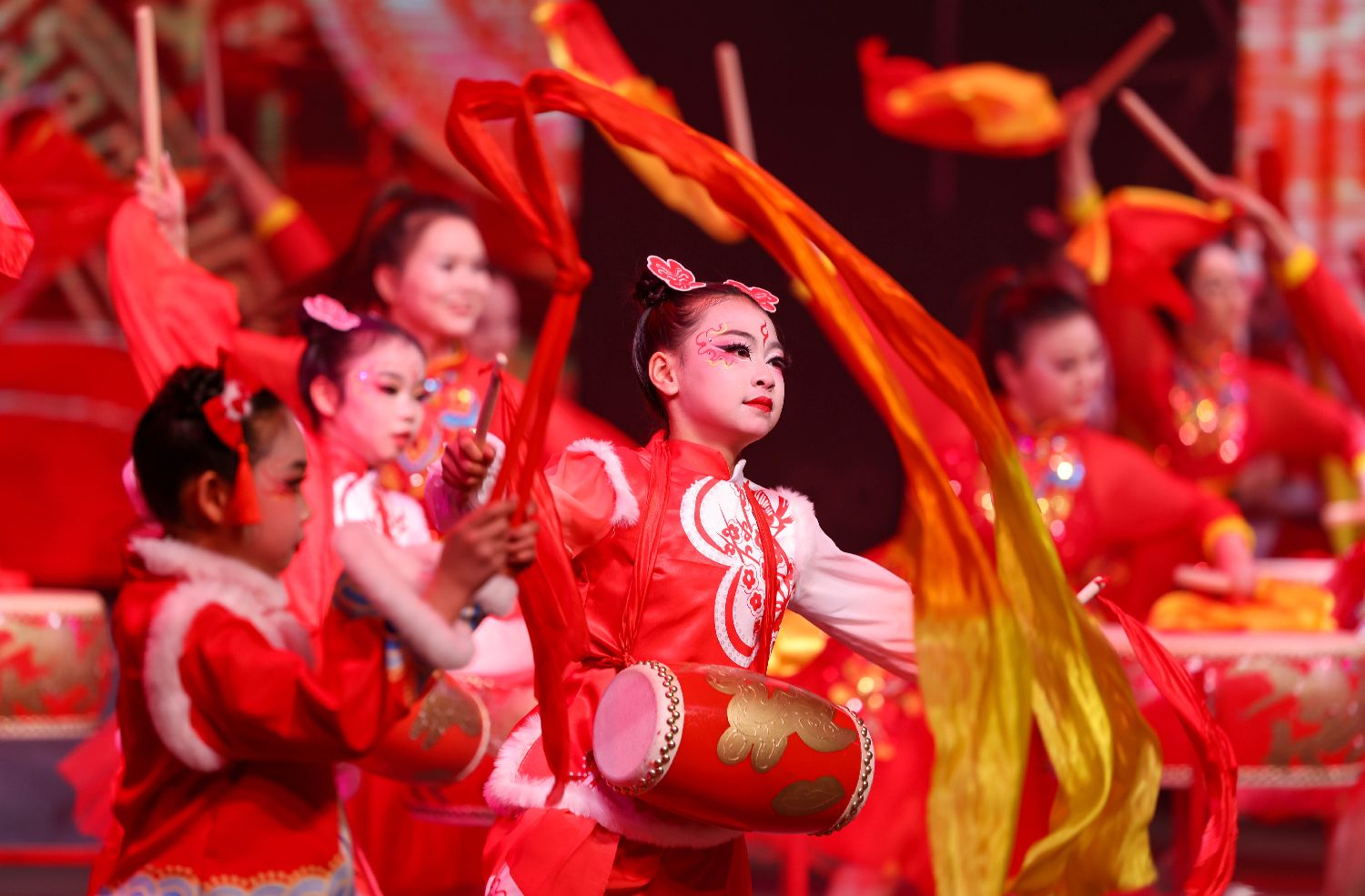 2月12日,演员在哈尔滨市道里区“我们的村晚”现场表演秧歌。(图片来源:本文图片均据新华社)