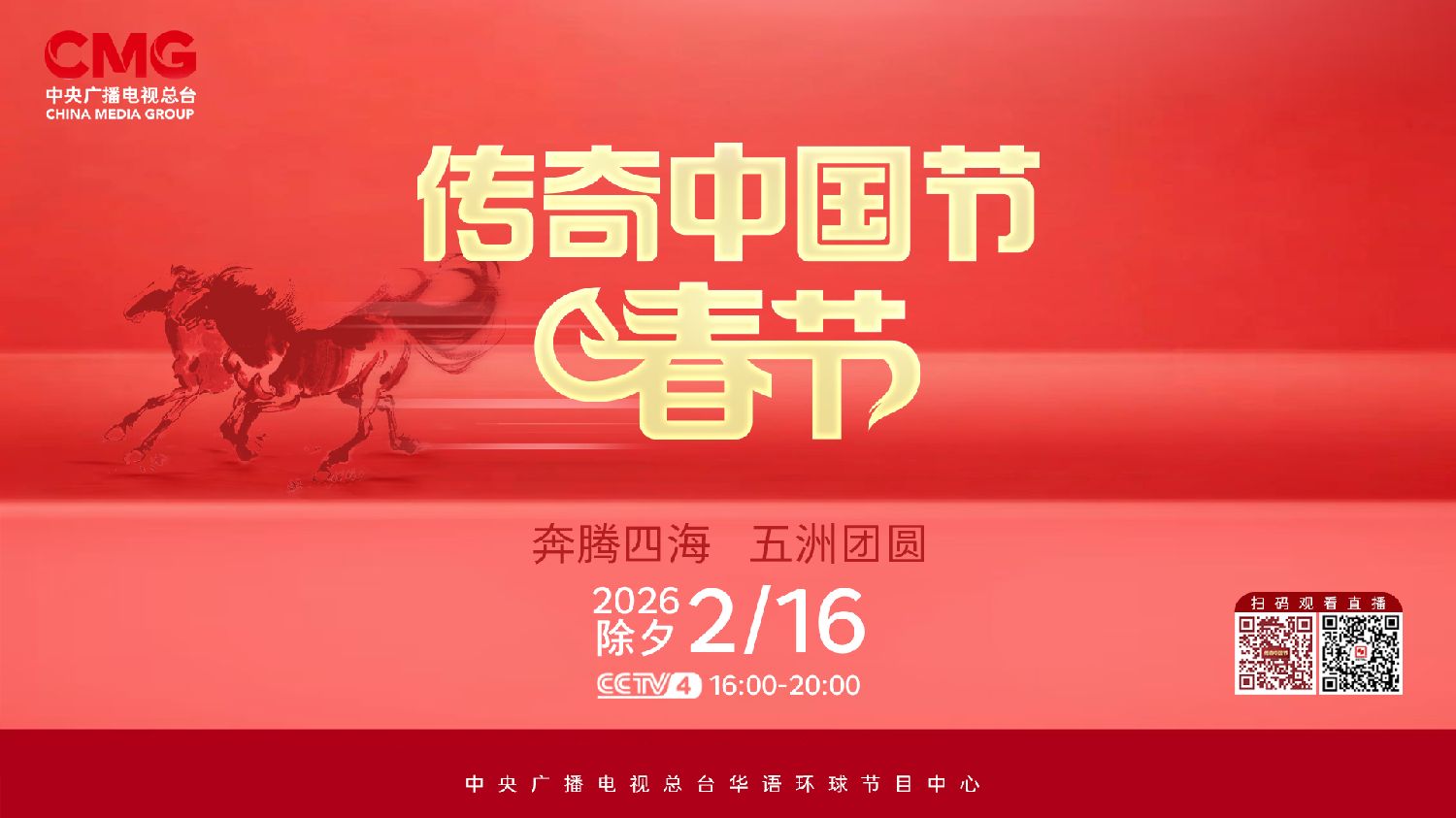 年年守岁,岁岁焕新。北京时间2月16日(除夕)16时至20时,中央广播电视总台中文国际频道《传奇中国节·春节》特别节目如约而至。中文国际频道亚欧美三版、CCTV4新媒体矩阵、央视频传奇中国节账号等同步直播,共同开启一场以“奔腾四海五洲团圆”为主题的全球大联欢!