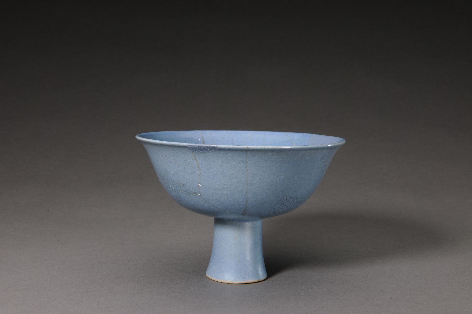 1月1日,“慕宋——明代御窑仿宋代名窑器特展”在景德镇御窑博物馆开幕。图为在该展上展出的明宣德天青釉高足碗。(图片来源:中新社)