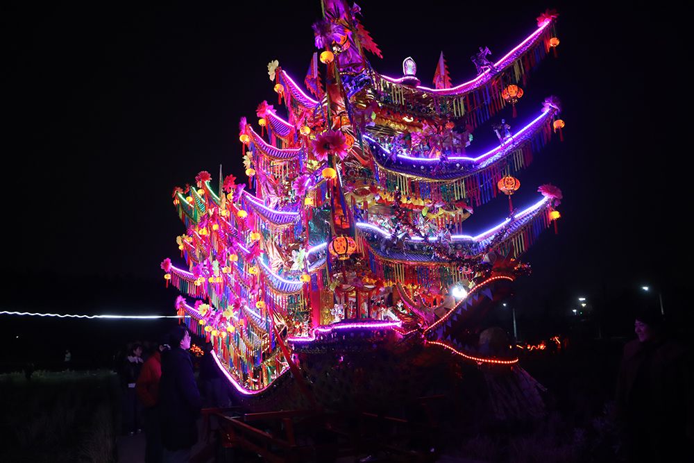 “过去龙身内点蜡烛,火光映纸如游龙腾空。如今改用五彩LED灯,雨夜巡游亦可流光溢彩。”张恬碧说,她儿时常帮父亲转印龙身图案,也会在龙灯“起档”时与伙伴争抢象征福气的头旗、头牌,寄托新年顺遂的期盼。