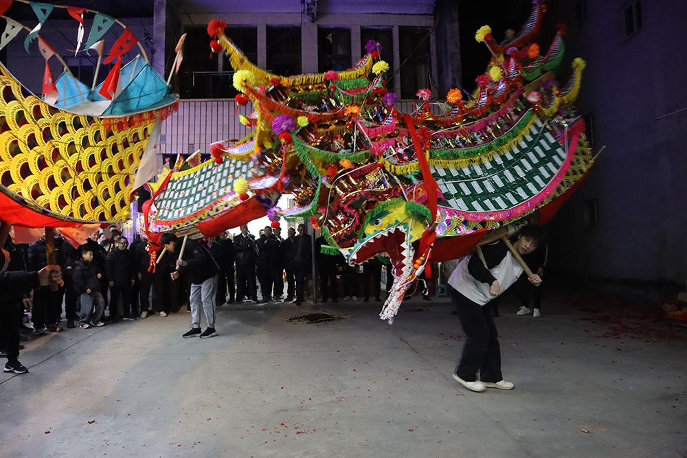 2月19日是农历正月初三。夜幕降临时,温州永嘉县芦黄村格外热闹。彩龙蜿蜒街市,沿途家家户户燃稻草、放鞭炮迎福。烟雾中龙身翻腾,热气与年味交织。