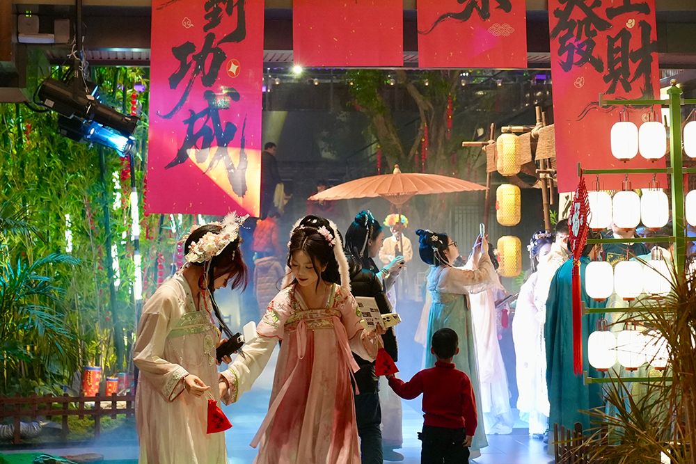 “新岁纳福,客官您选好嘞!”“要一份白糖糕!”在江西省南昌市某餐厅的“豫章宴”上,食客化身古代“才子佳人”,逛集市、吃饭、看表演,完成一场穿越时空的文化盛宴。春节期间,这样的场景在此地时常上演。