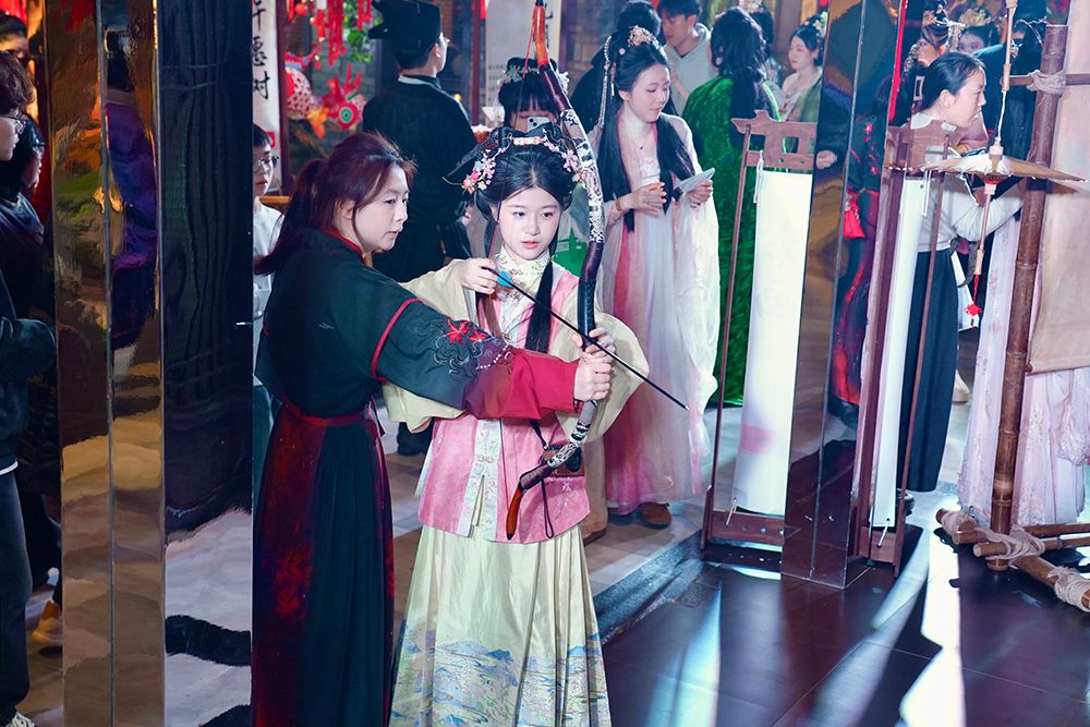 在“豫章宴”上,用餐前,随着一声锣鼓声,集市“开市”。“我想穿这套明制服饰,去买花灯、做糖画、射箭,争取一小时内打卡完所有摊位。”今年23岁的顾客姚佳宁说,这类餐厅具备“能看、能吃、能玩”的多重体验。