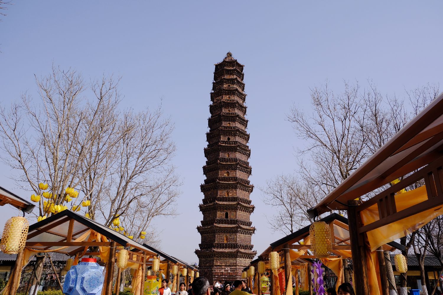 这座琉璃砖塔始建于北宋皇佑元年(公元1049年),因通体镶嵌褐色琉璃砖,颜色近似铁色,故俗称“铁塔”,是中国目前现存最高大、历史最悠久、保存最完整的一座琉璃砖塔,享有“天下第一塔”的美称。