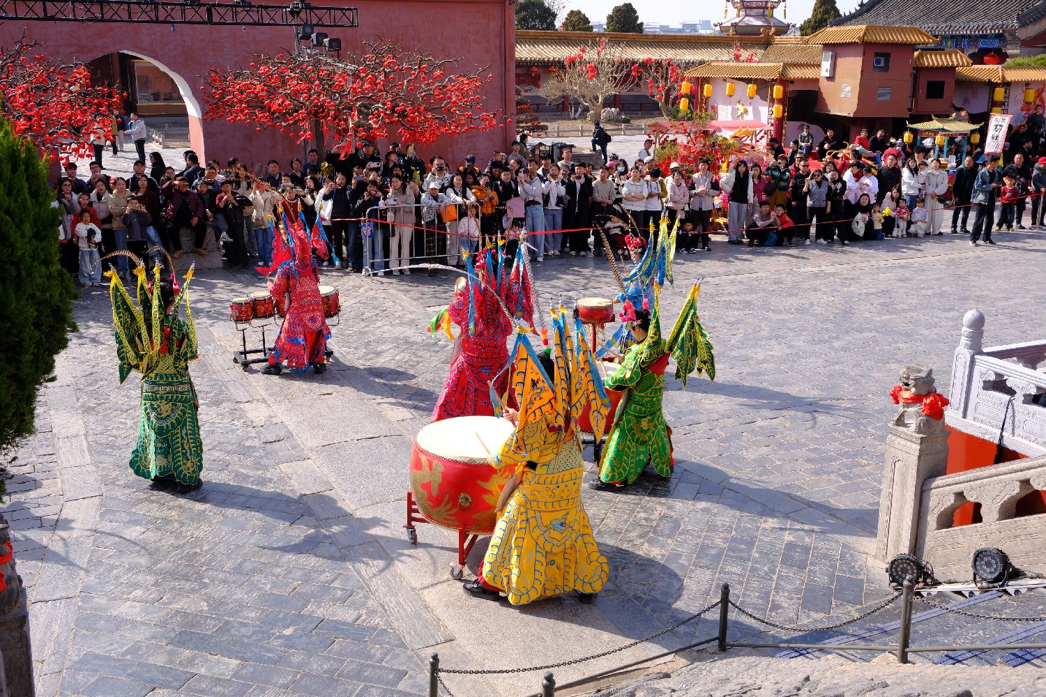 春节期间,龙亭景区不间断上演各式表演,让游客“一朝梦回汴梁繁华”。