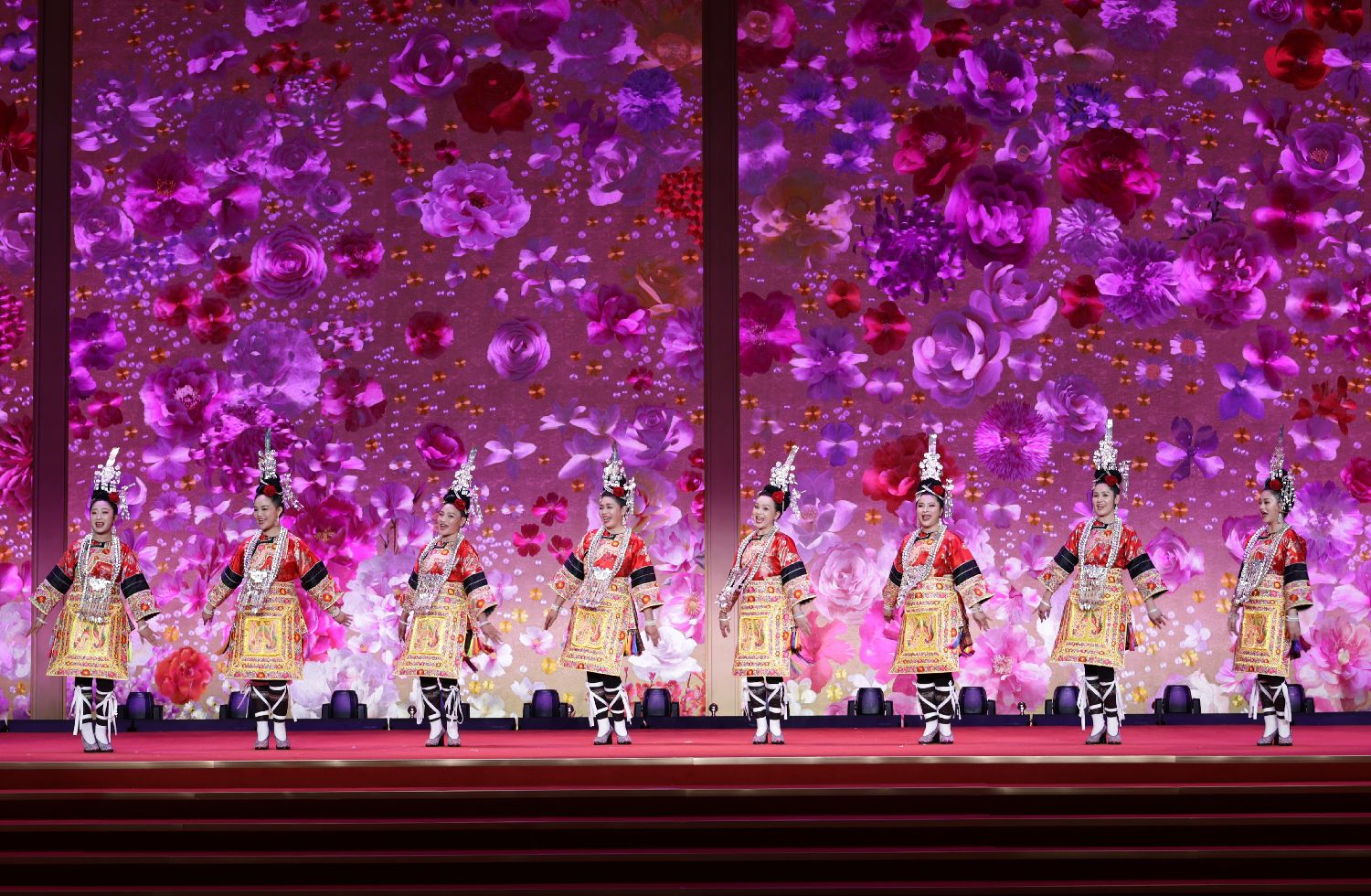 3月6日,演员们在纪念“三八”国际妇女节中外妇女招待会上表演侗族大歌。