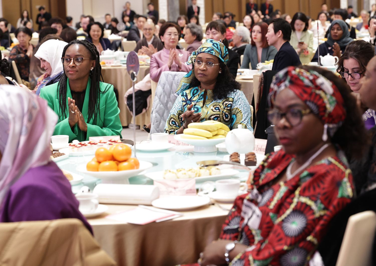 3月6日,外国妇女代表在北京参加纪念“三八”国际妇女节中外妇女招待会。