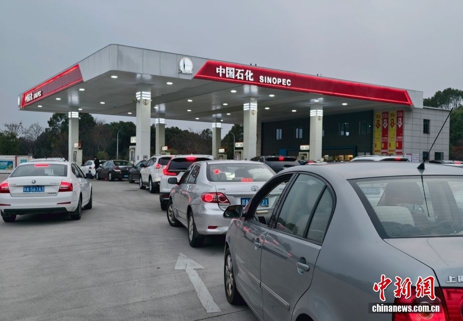 3月9日,江西南昌,车辆在一家加油站排队加油。(图片来源:本文图片均据中新网)