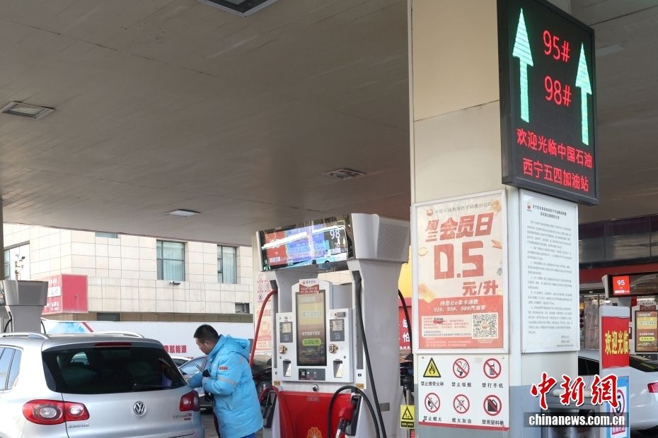 3月9日,青海西宁,一家加油站的工作人员为车辆加油。