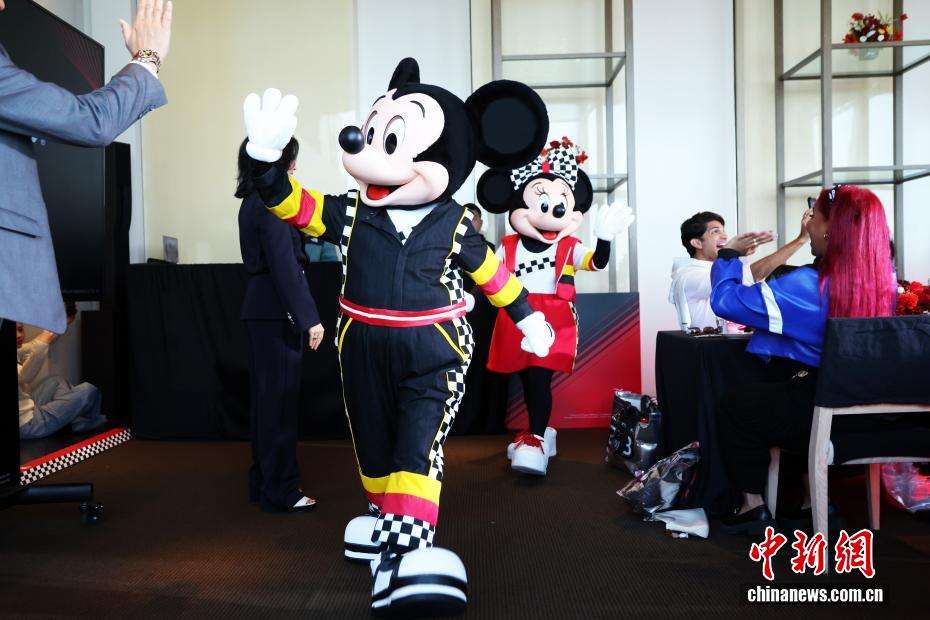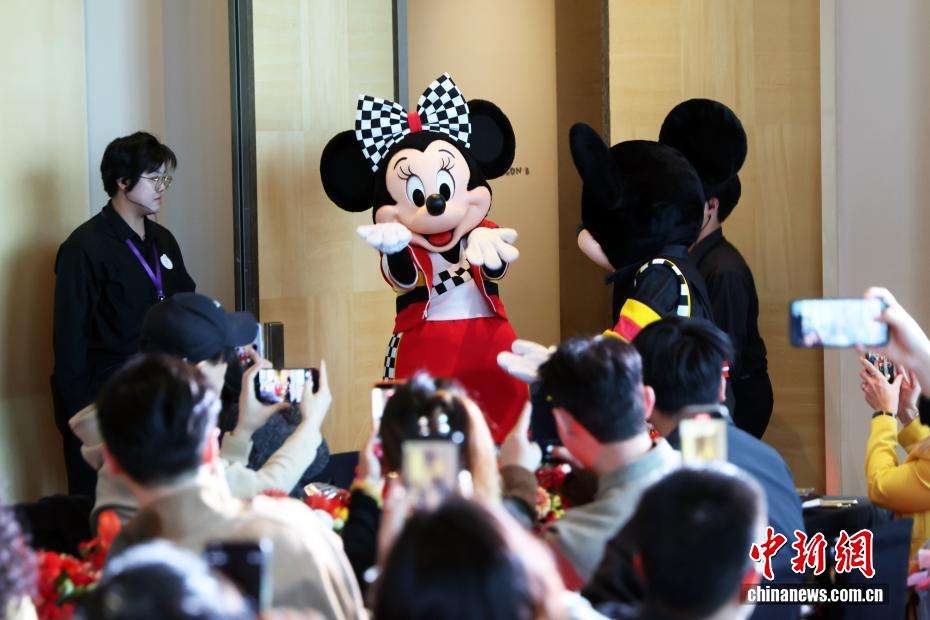 3月11日,米奇与米妮全新赛车主题形象在上海正式亮相。(图片来源:本文图片均据中新网)