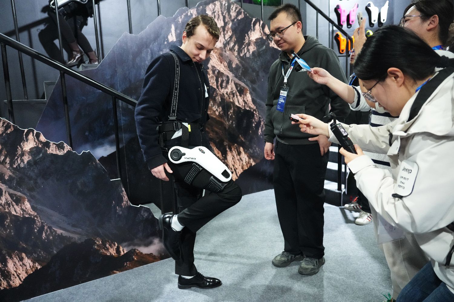 人体外骨骼设备吸引外国观众体验。