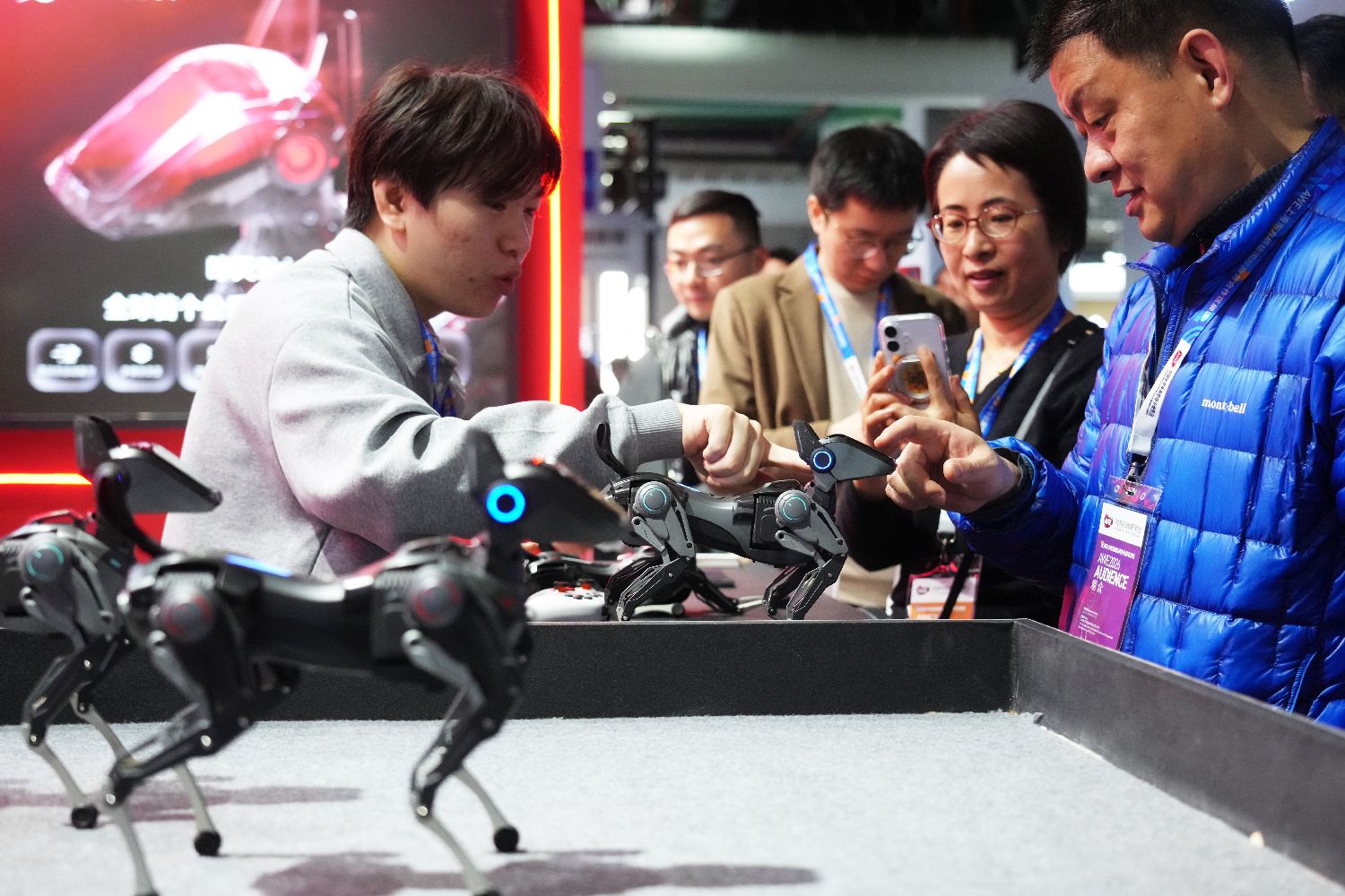 小型陪伴机器狗吸引观众围观。
