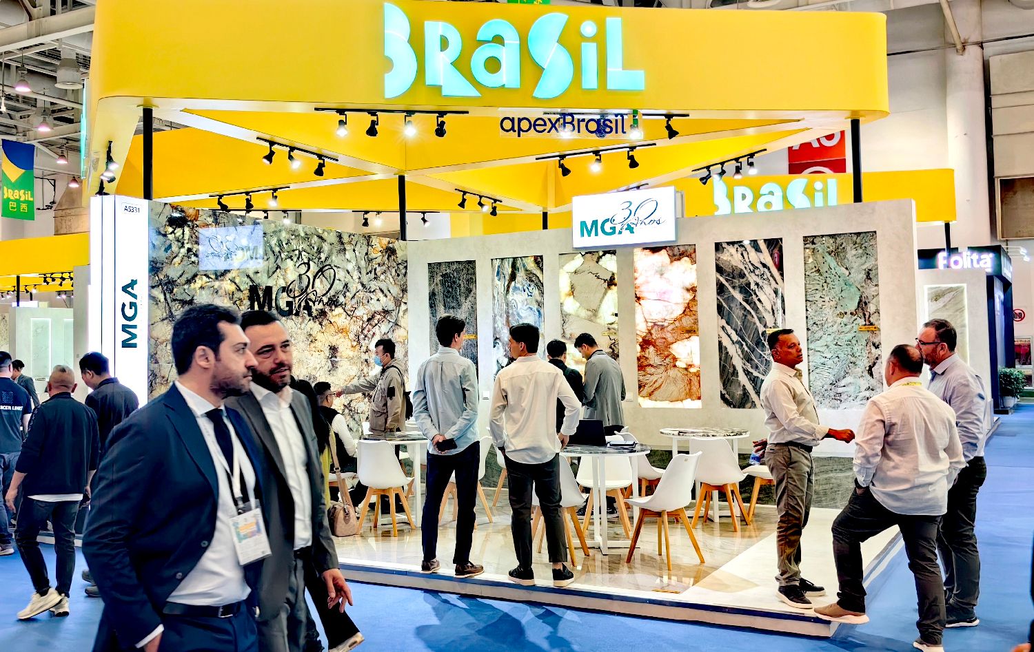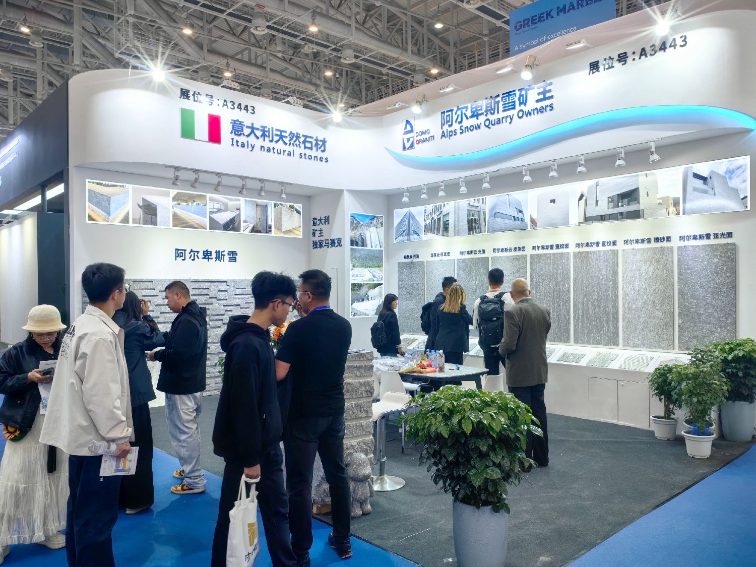 国际展区表现抢眼,来自40个国家和地区的300家国际展商参展,包括意大利、土耳其、伊朗、巴西、埃及等全球重点石材产区在内的8大国家展团均以大面积特装展位亮相。意大利受邀成为本届展会主宾国,58家该国品牌共设1846平方米展区,为海内外买家对接意大利优质矿主、生产商及设备企业提供直通渠道。