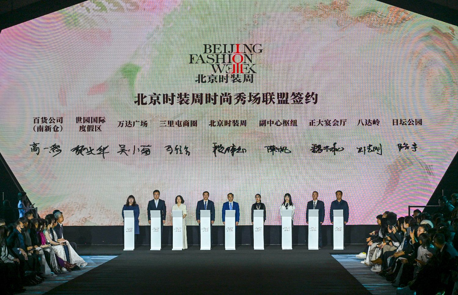 3月17日,在2026秋冬北京时装周开幕盛典上,参与本届时装周的商圈代表进行北京时装周时尚秀场联盟签约。(图片来源:本文图片均据新华社)