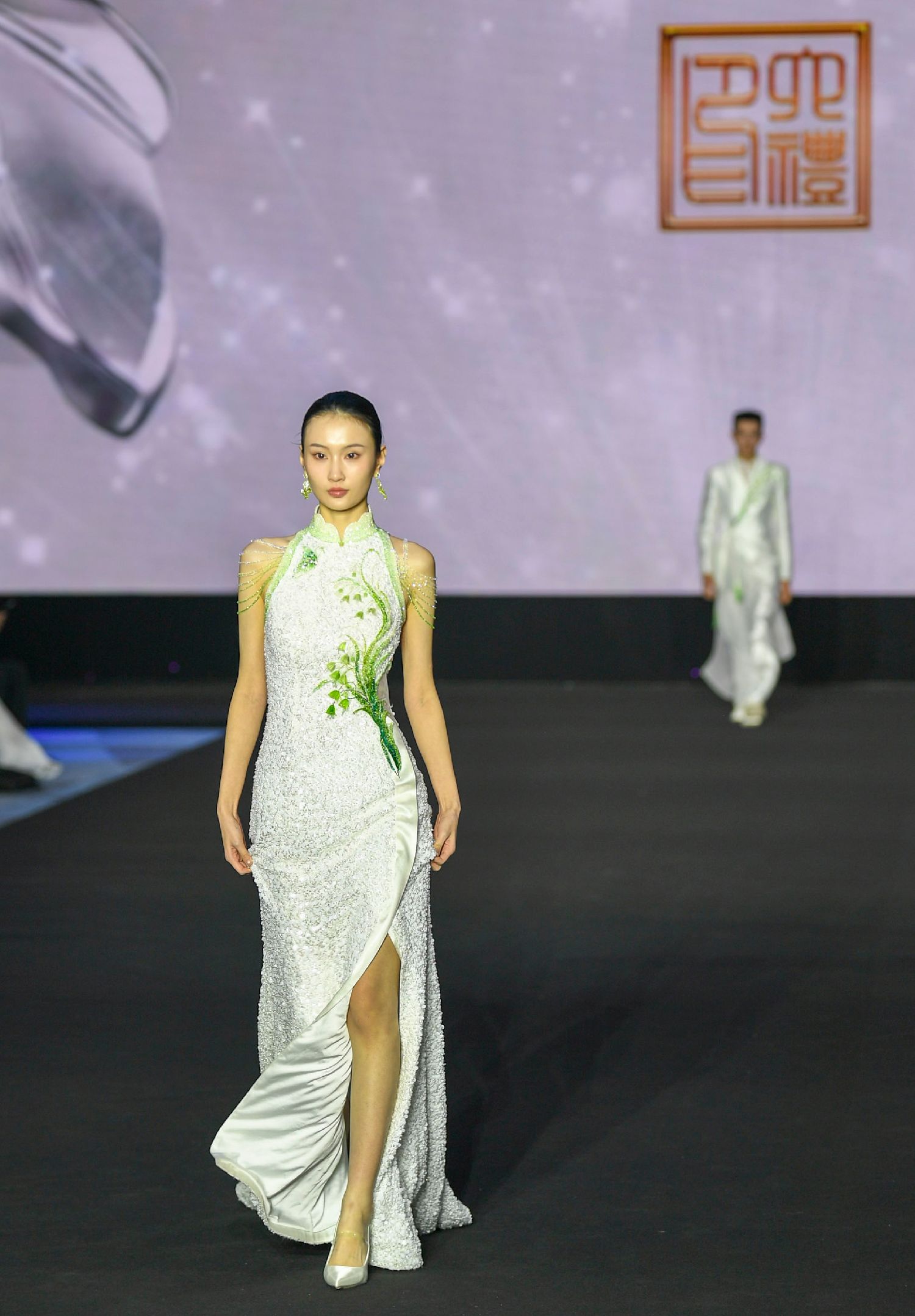 3月17日,在2026秋冬北京时装周开幕秀上,模特谢幕致意。