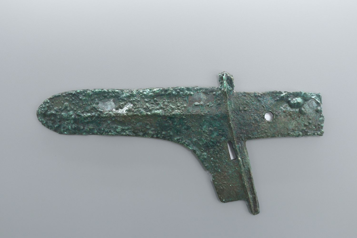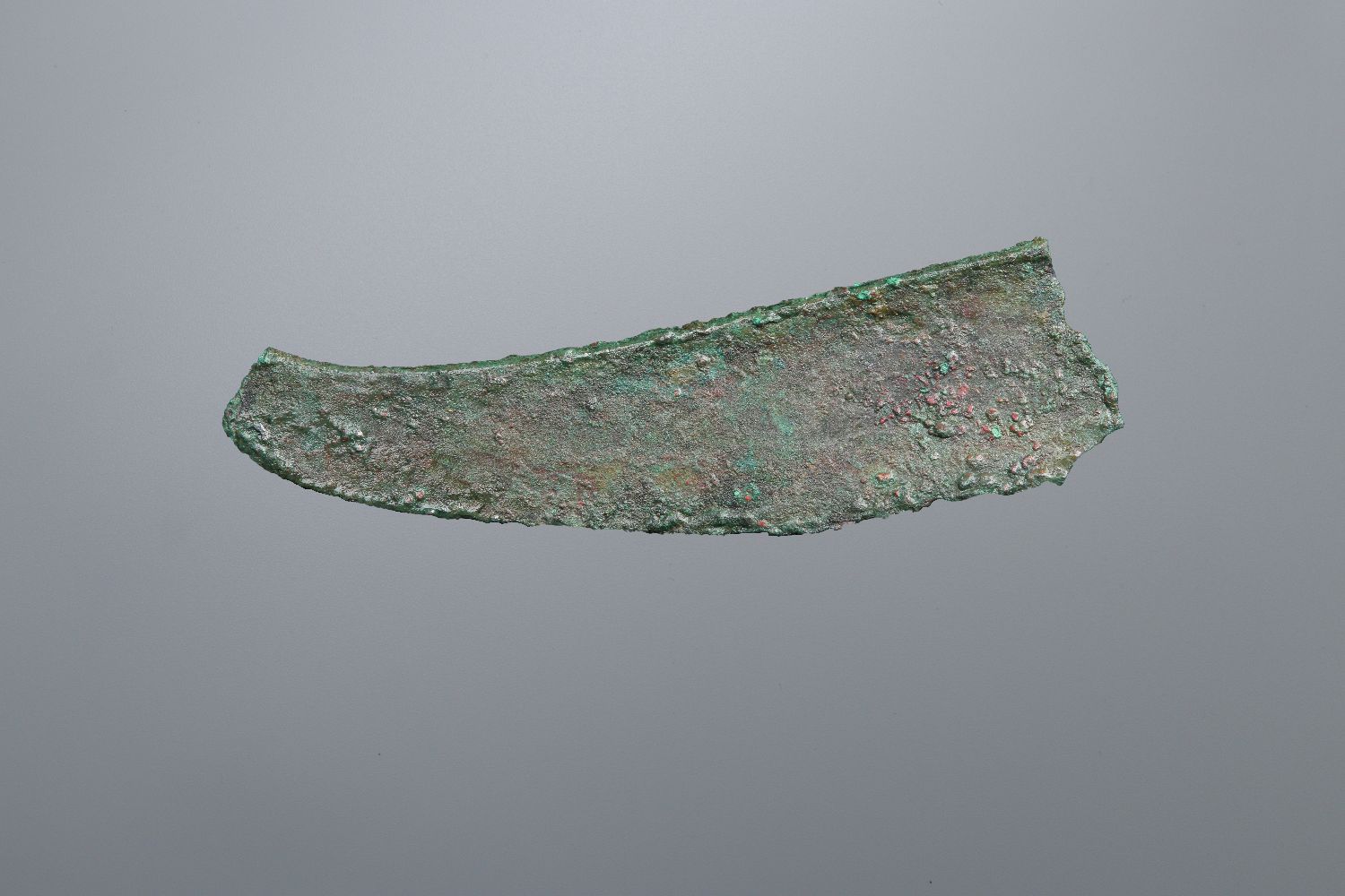 资料图为出土的铜刀。(图片来源:中新社发/陕西省考古研究院供图)