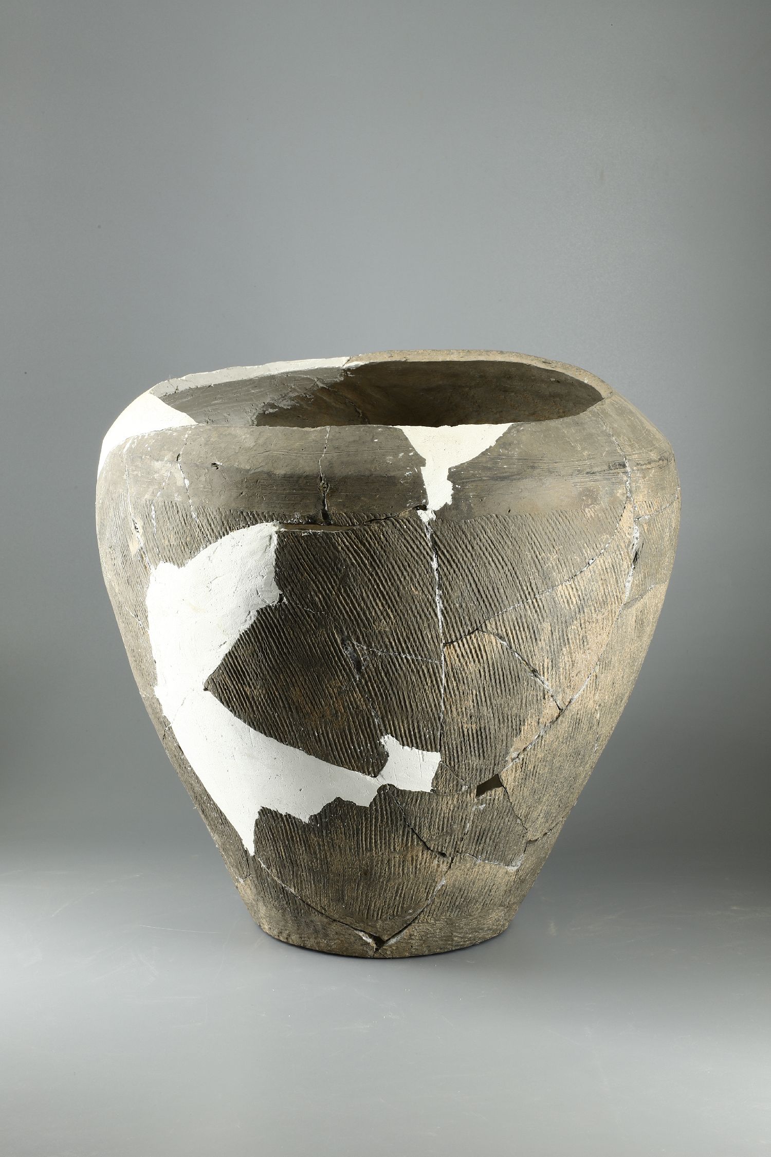 资料图为出土的折肩罐。(图片来源:中新社发/陕西省考古研究院供图)