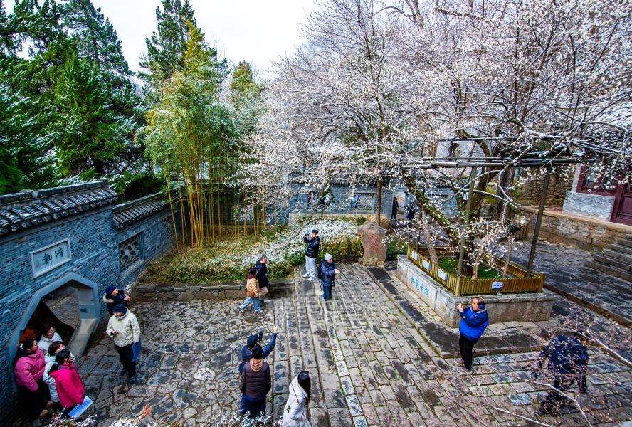 时光流转,春风又至琅琊,欧阳修手植的这棵古梅再度缀满繁花,远观如云似雪,近赏暗香浮动。往来游人踏春寻梅,共赴花事之约。