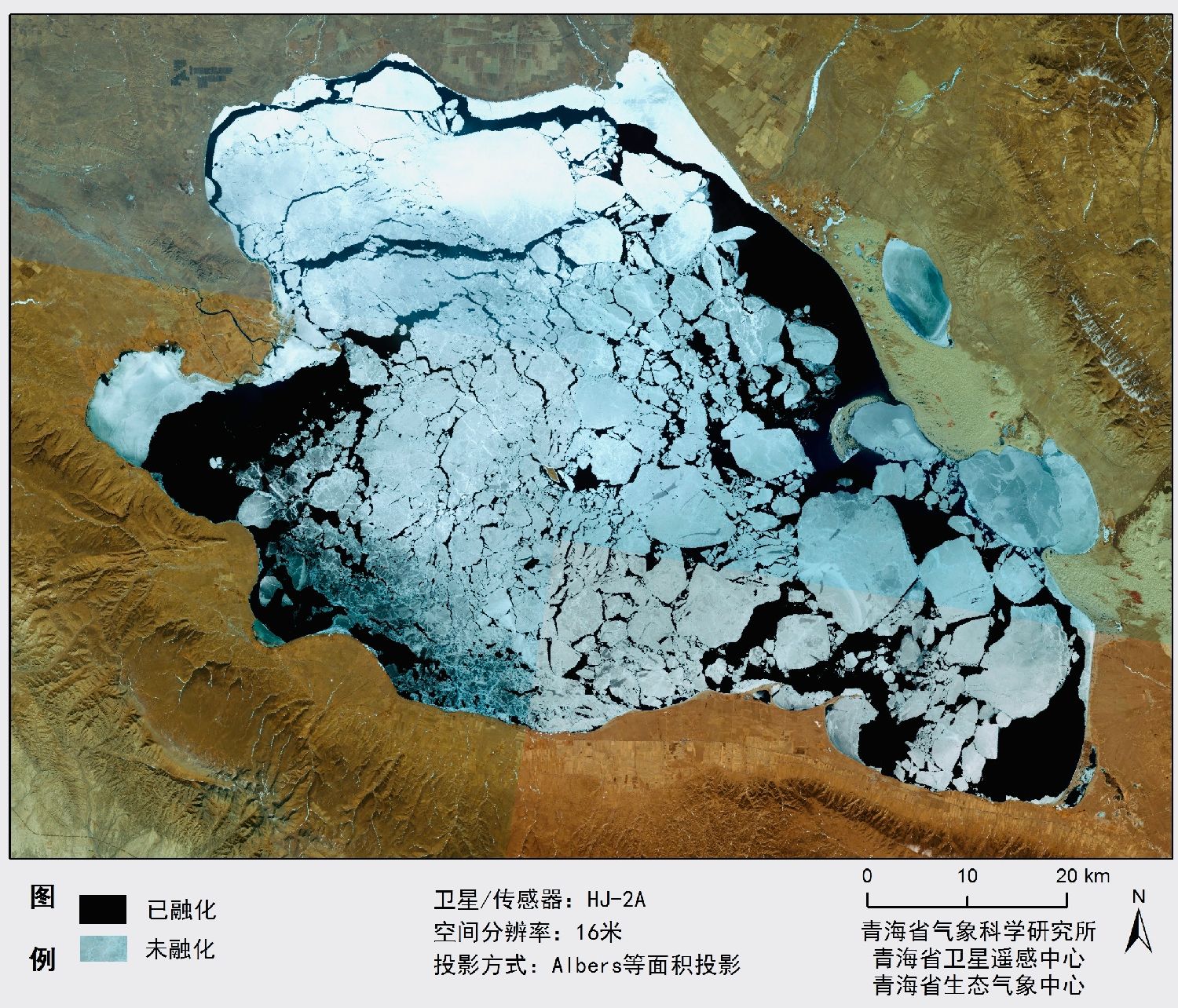 图为2026年3月16日青海湖湖冰融化遥感监测。(图片来源:中新社)