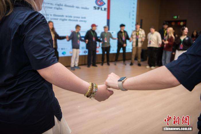 图为中美青少年进行游戏互动。
